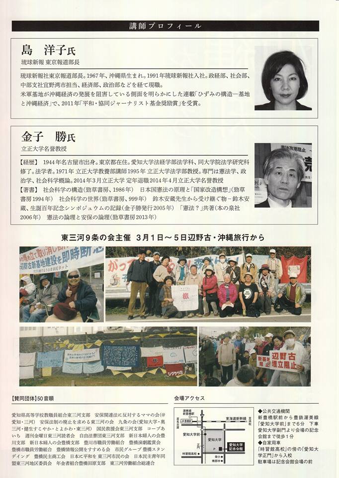 法 「九条の会」アピールに賛同する愛知・大学人ネットワーク共催、2014年3月18日<火>)のチ ラシ(pdf ファイル、260KB)
