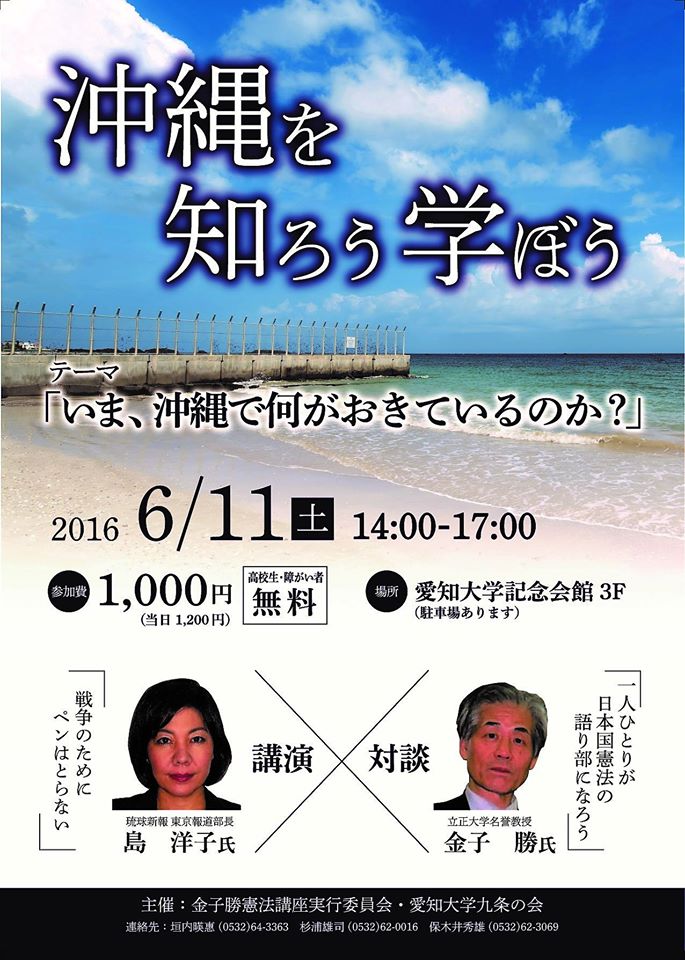 2015.6 沖縄を知ろう・学ぼう 講演&対談「沖縄の現状とゆくえ+琉球独立論」(7月4日<土>、共催:金子勝「憲法講座」実行委員会・愛