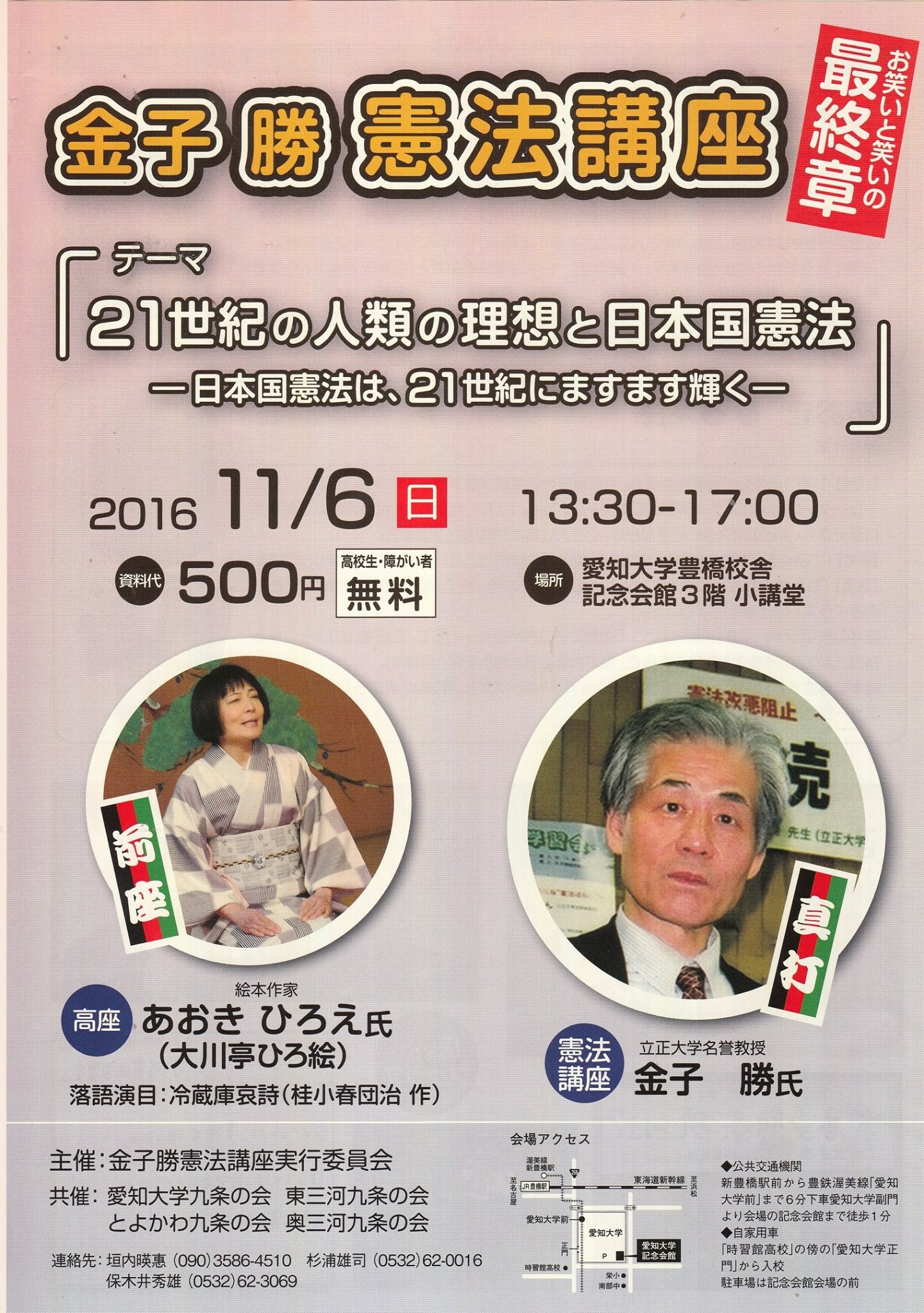 2016.11 金子勝憲法講座「21世紀の人類の理想と日本国憲法」(2016年11月6日<日>、金子勝憲法講座実行委員会主催、愛大九条の