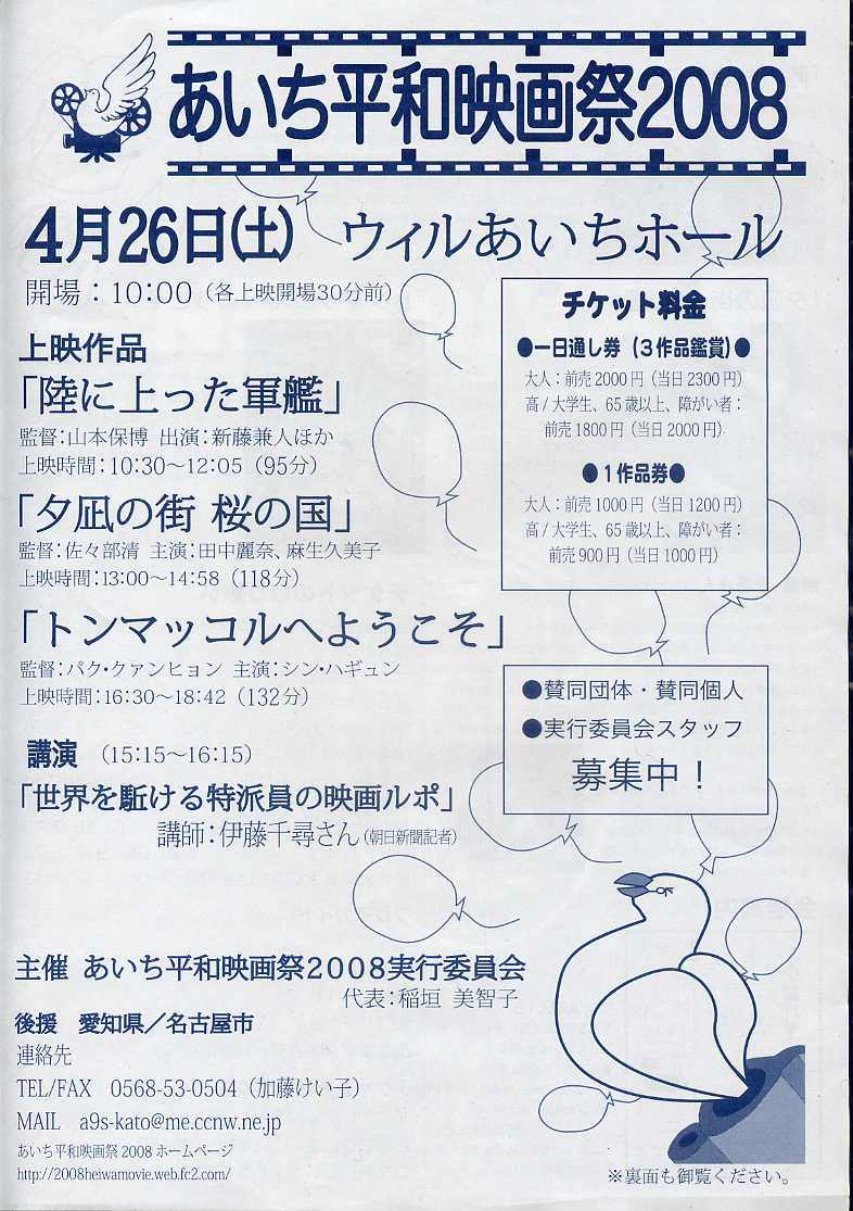 2008.02 「あいち平和映画祭2008」関係:チラシ(表、裏); 賛